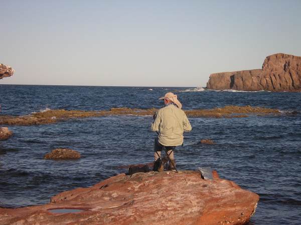 The intrepid kayaker pumping the desalinator at Punta Pilares
