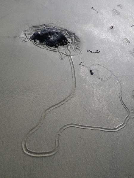 Snail tracks in the sand at the entrance to Bahia San Quintin