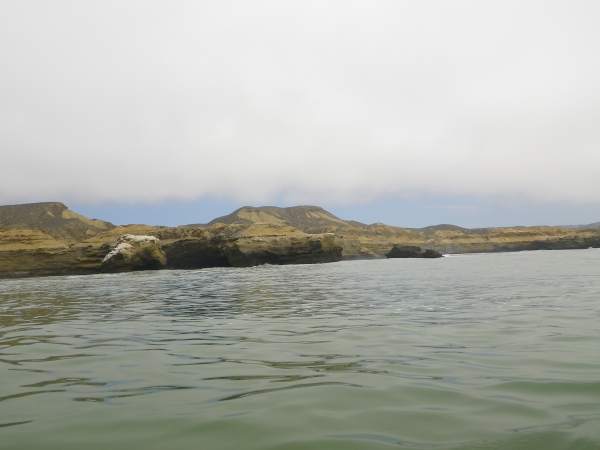 The shore had lots of sandstone caves, but there were too shallow to paddle into