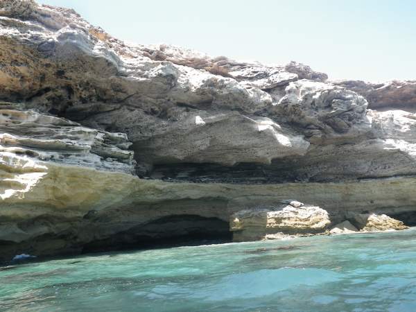 Caves (still too shallow) under beautiful weather carved sandstone cliffs.