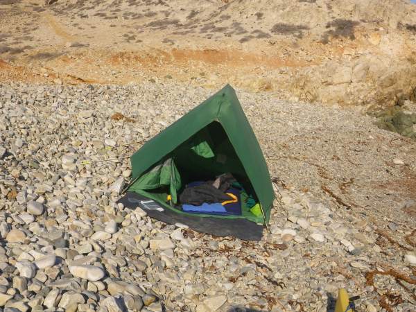 But I chose instead a small rocky beach with just enough flat space for one sleeping bag