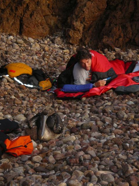 A bedraggled pelican shared our campsite for a night