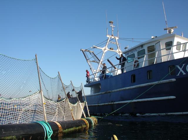 Aquaculture workers at Isla Todos Santos