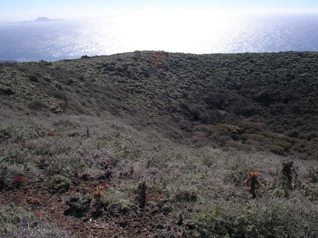 A panorama of the cone in the top of Isla San Martin