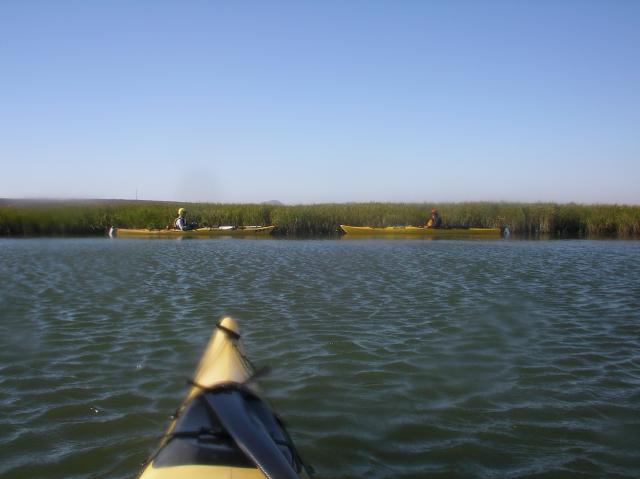 Charles Harris and Gregg Berman hiding behind a point from the wind