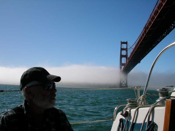 Sailing under the Golden Gate Bridge and into the fog