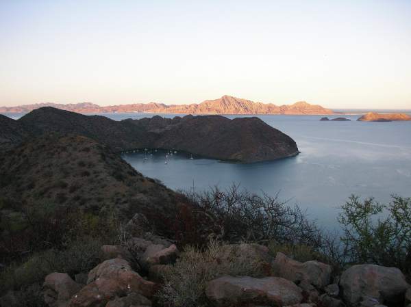 Sunset light on Puerto Escondido and Isla Carmen