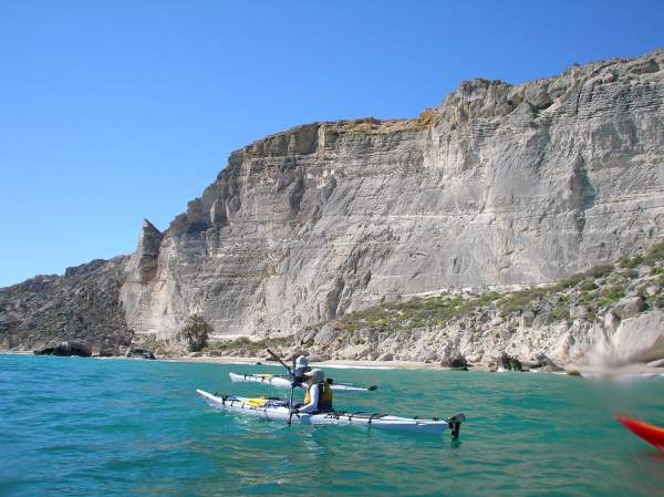 Herb Howe and Andrea Wolf in front of white cliff