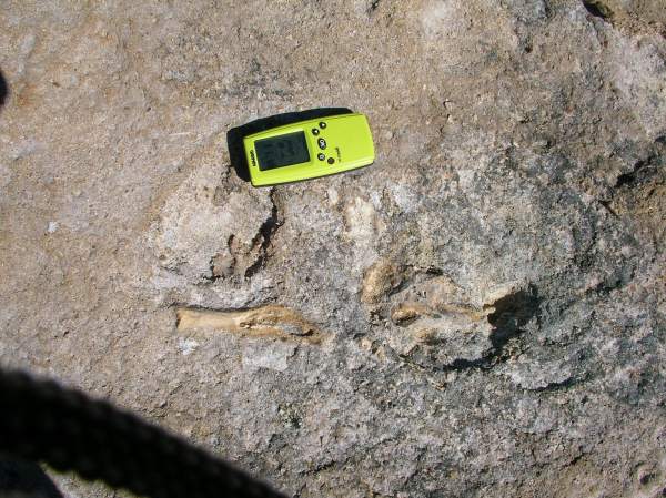 I thinks this the fossil of a hand, foot, claw or flipper in the sanstone