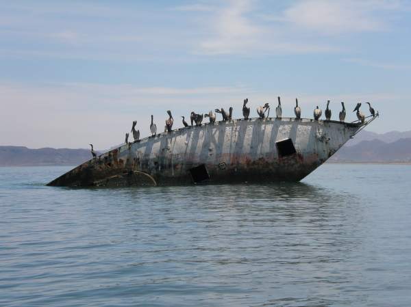 We stop for lunch at the wreck of a yacht on the La Paz spit