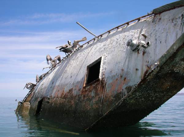 We stop for lunch at the wreck of a yacht on the La Paz spit