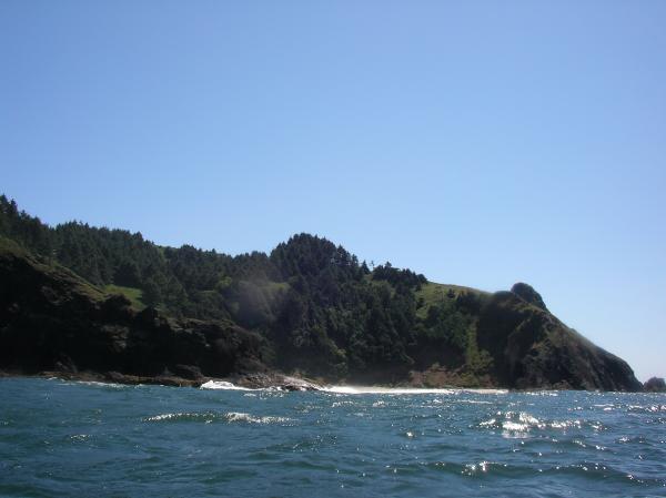 Approaching our camping cove for the evening near Cascade Head