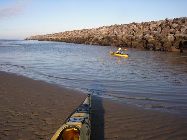 Dick Ryon launching behind the Yaquina Bay south jetty