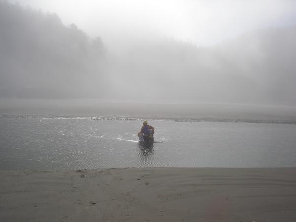 Dick Ryon appears out of the fog with gear to pack