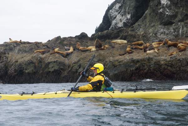 The intrepid kayaker off Arch Rock in the Orford Reef
