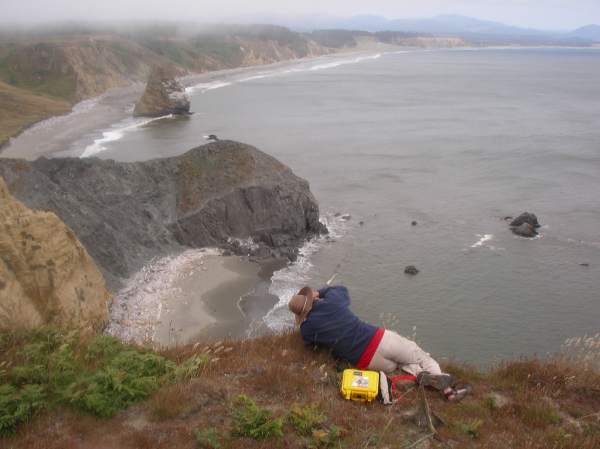 Brian Schulz photographing our camp from the top of Cape Blanco