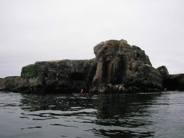 Dave Littlejohn and Dörte Mann entering the arch on Sea Lion Rocks