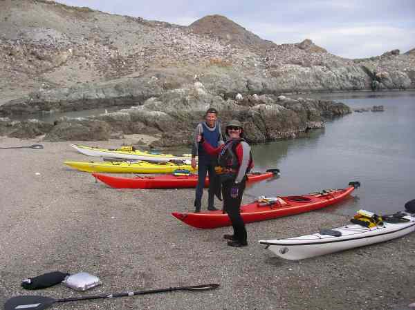 Doug Hamilton and Dave Harry unpacking on Isla Salsipuedes