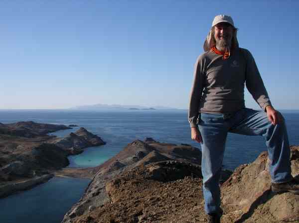 The intrepid kayaker on the peak of Isla Salsipuedes
