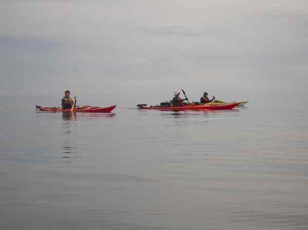 Doug Hamilton, Don Fleming and Dave Harry paddling to Isla el Estanque