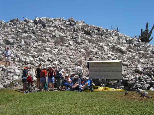 Eco-tourist birders from the cruise ship 'Sea Bird' prepare for a tour of Isla Rasa