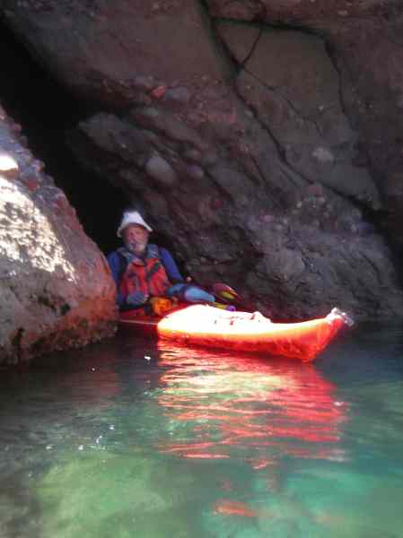 Doug Hamilton and Don Fleming exiting a narrow crack on Isla Las Animas