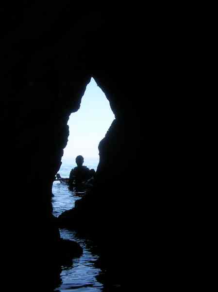 Doug Hamilton and Don Fleming entering a cave on Isla las Animas