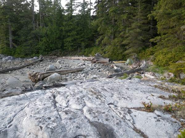 My tent on the rocky beach on Thurlow Island