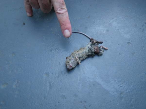 A mouse crawled into Andrea Wolf's clothing and died!