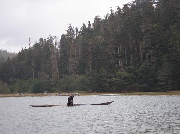 Maligiaq Padilla demonstrates Greenland rolling in Big River at TAKS