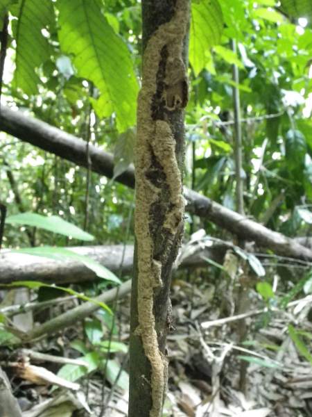 Termite tunnels up a sapling in Khao Sok, Thailand