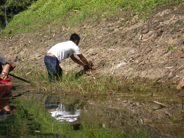 Rescuing a mouse deer from the lake in Khao Sok, Thailand