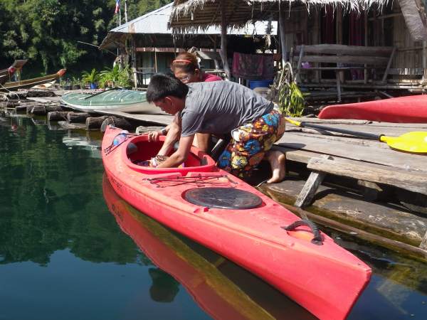 Rescuing a mouse deer from the lake in Khao Sok, Thailand