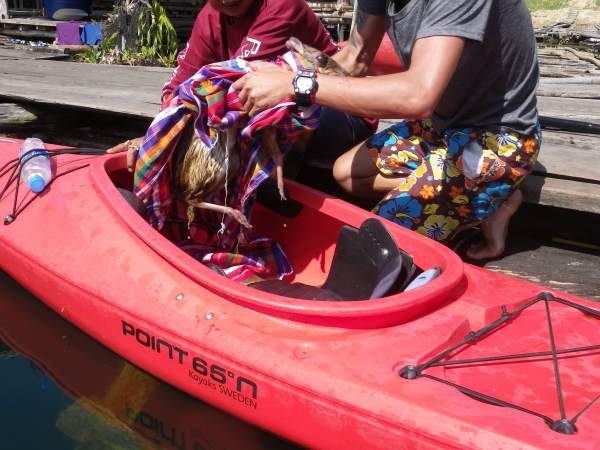 Rescuing a mouse deer from the lake in Khao Sok, Thailand