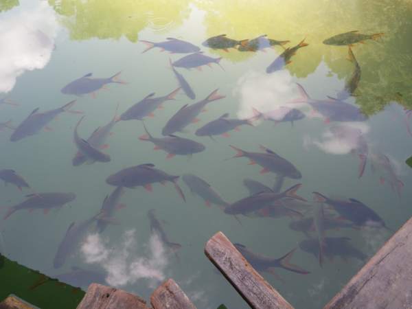 Fish collected in the shadow of these floating bungalows in Khao Sok, Thailand