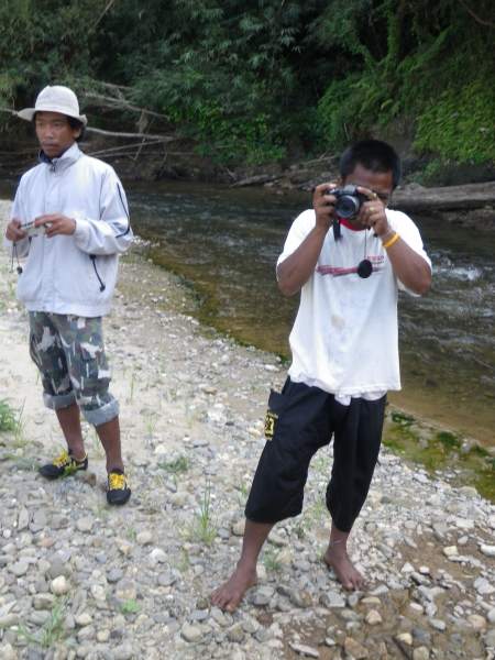 Taking the goup photo at the river in Khao Sok, Thailand