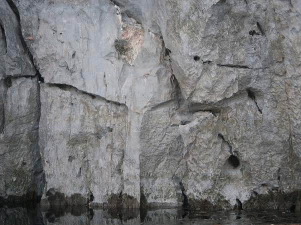 Interesting stone textures dropping into the water in Khao Sok, Thailand
