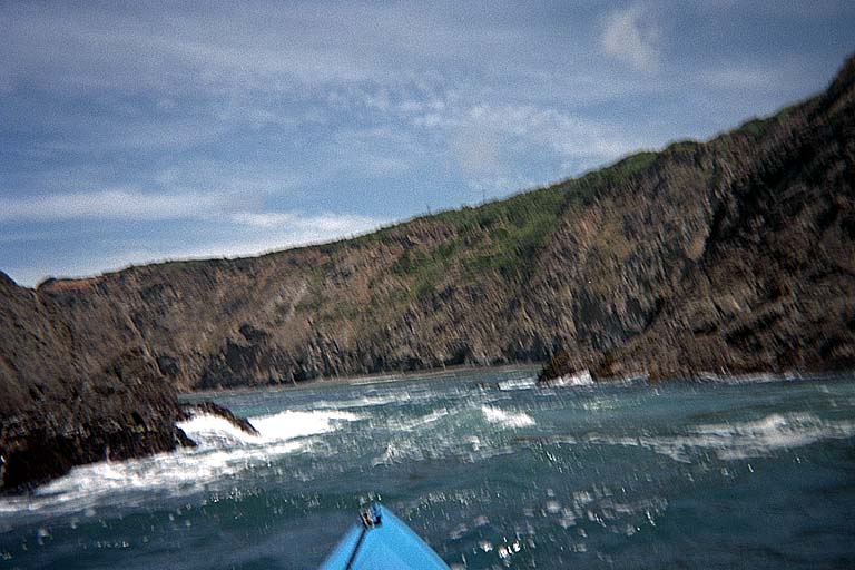 Kayakable gap behind rocks near Elk Cove.
