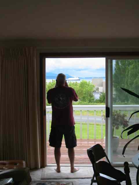 Don Fleming watches the Alaska Ferry arrive in Bellingham