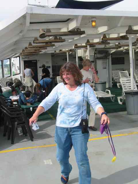 Joe Petolino, Don Fleming and Kate Deslauriers happy to be on the ferry at last
