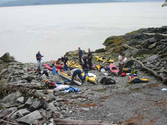 Loading the kayaks at Blaquiere Point