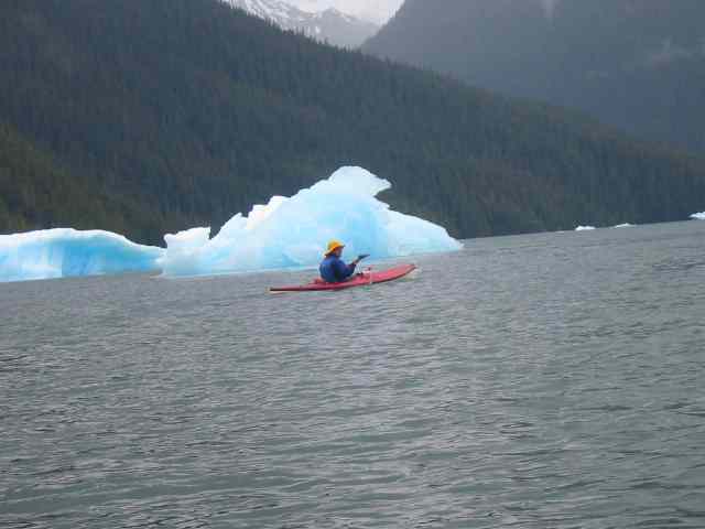 Joe Petolino in front of iceburgs at LeConte Bay