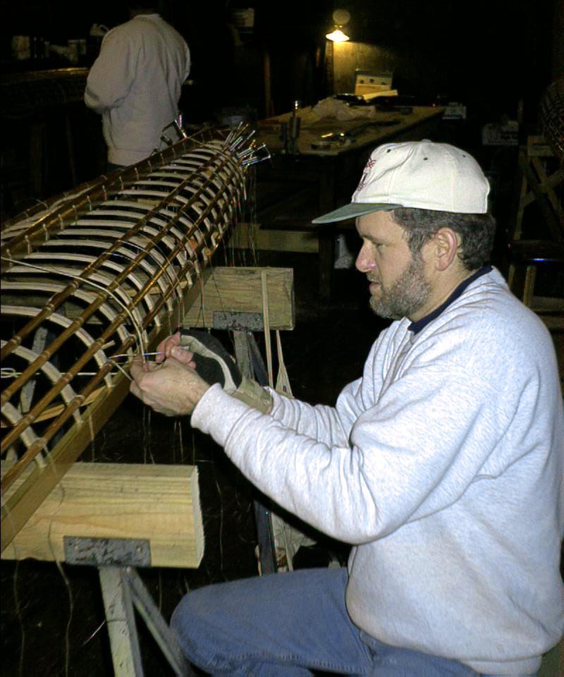 Dave 'sewing wood'.