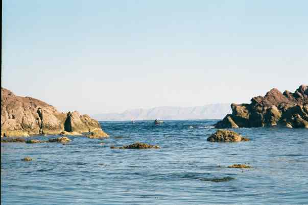 Kayakers between rocks