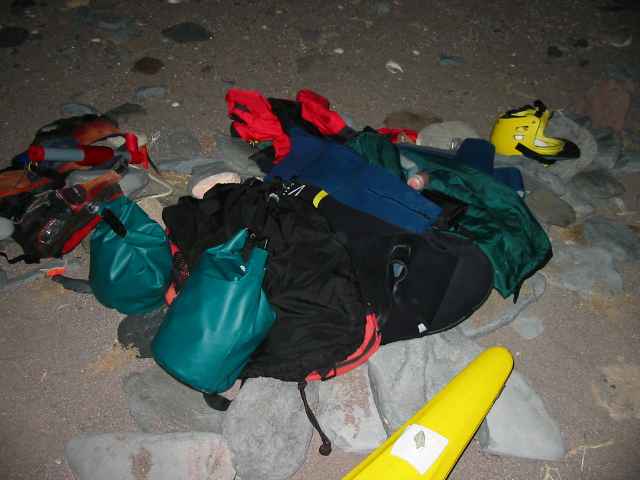 pile of gear at night