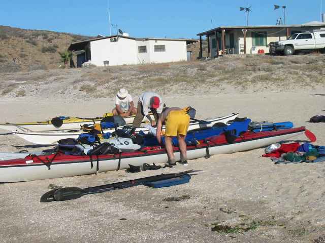 Fred Cooper, Dave Littlejohn and Joe Petolino packing boats at San Francisquito