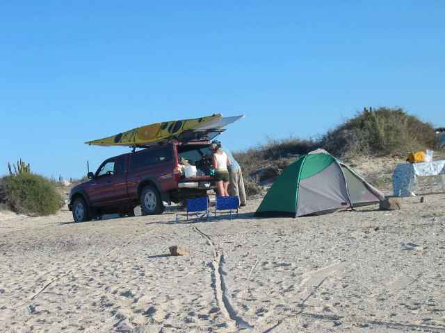 Dave Harry and Christine setting up camp at San Francisquito Cove