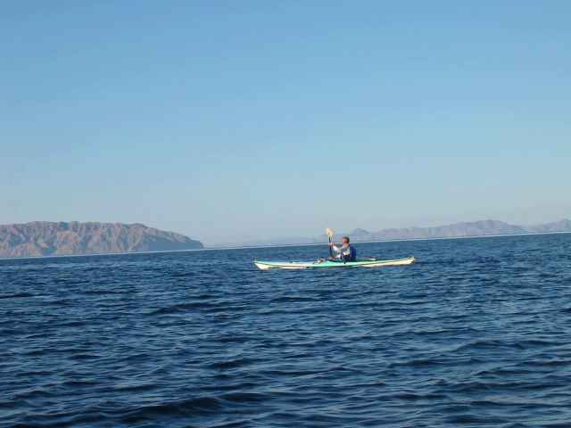 Roger Lamb paddling with islands in distance