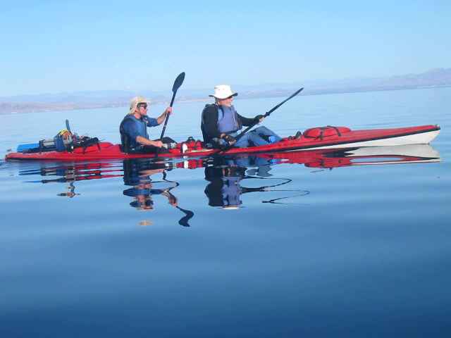 Joe Petolino and Don Fleming in calm water en route to Isla San Lorenzo