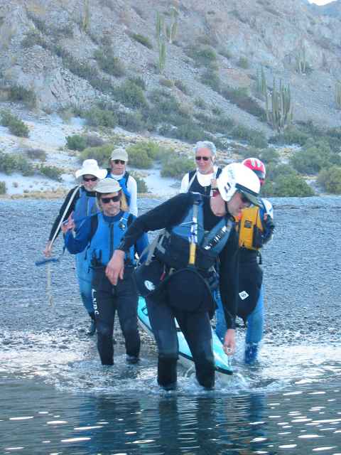 Carrying a boat into the water
